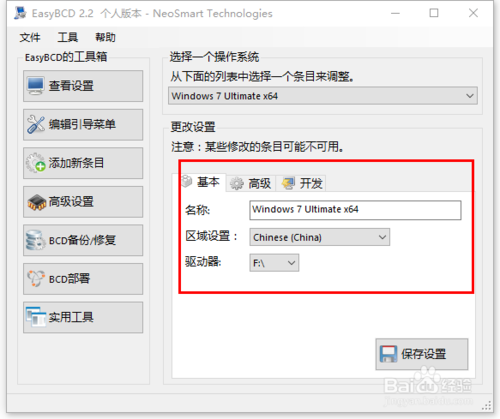 此时,打开了EasyBCD软件的设置对话窗口,可以进行系统引导设置了;