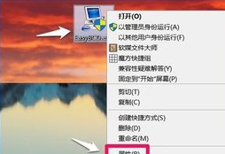 我们右键点击EasyBCD软件图标,在右键菜单中左键点击:属性;