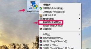 右键点击EasyBCD图标,在右键菜单中左键点击:兼容性疑难解答(Y);