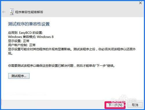 打开了EasyBCD软件的设置对话窗口后,我们才能在程序兼容性疑难解答窗口点击:下一步;