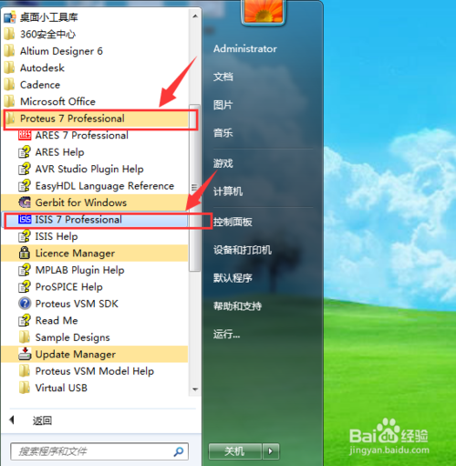 proteus7.8是不会在桌面或者快捷栏里生成图标的,因此在菜单里可以找到,如图所示