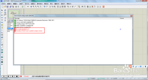 如果电路有错误的地方,点击开始仿真,会自动弹出错误窗口,红圈内是错误向提示