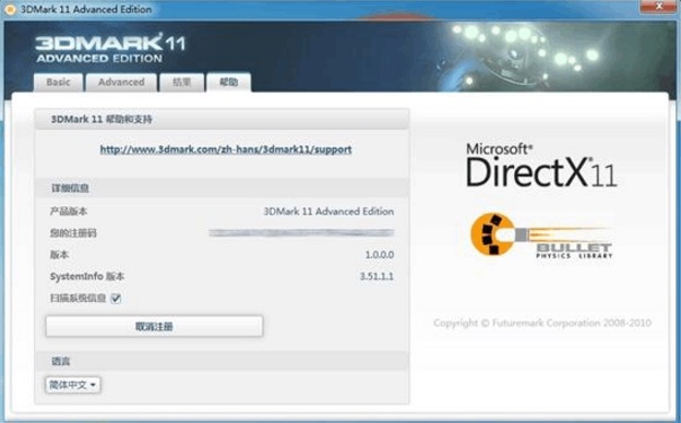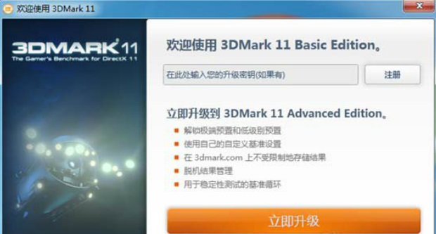 重装3DMark11的时候序列号会被重置,需再次输入,此举是方便删除失效的序列号。