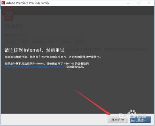 adobe premiere cs6安装序列号:1132-1122-7728-4238-2407-7045、1132-1716-7283-7676-8611-7917、1132-1497-8548-7999-0464-8095、1325-0949-2080-9819-3777-3230、1325-0160-5283-9851-2671-8951