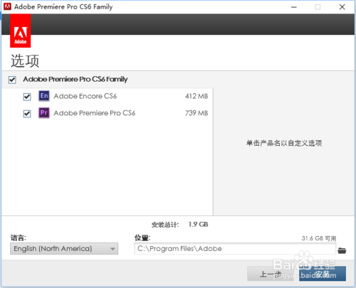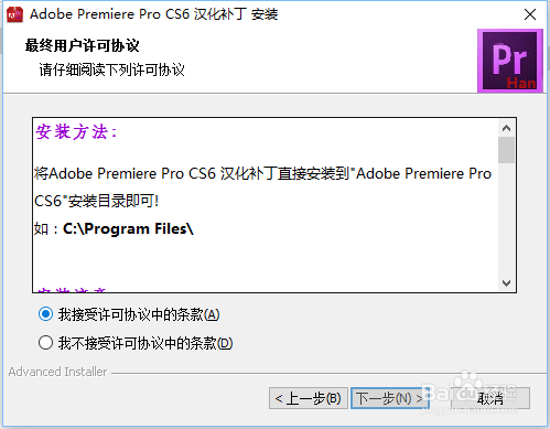 选择安装路径。一定要安装到:C:\Program Files\Adobe\Adobe Premiere Pro CS6文件夹中去。
