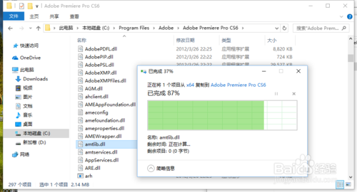 选择Adobe CS6 破解补丁\x64下的amtlib.dll文件点击复制,复制到:C:\Program Files\Adobe\Adobe Premiere Pro CS6文件夹中去替换原有文件。记得是安装路径下的Adobe Premiere Pro CS6文件夹。