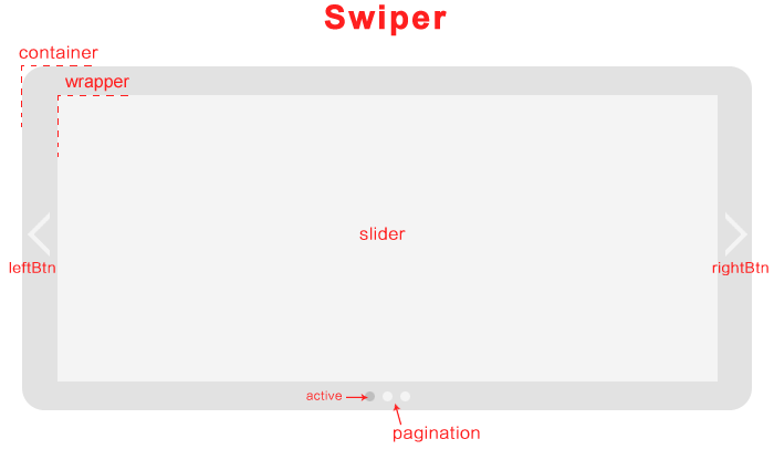里面包括滑动块(slide)的集合(wrapper)、分页器(pagination)、前进按钮等