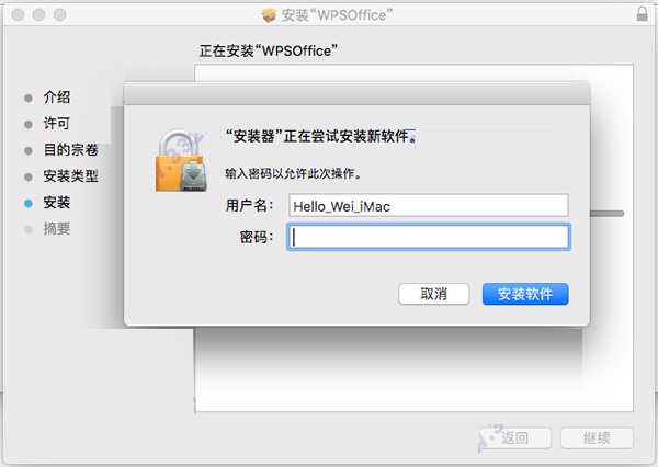 4、这一步点击“继续”后会出现需要输入密码,我们输入本机macOS开机密码即可,然后点击”好“