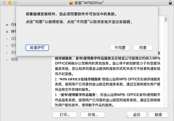 3、出现许可协议认同问题,我们点击“我接受”,然后一直点击“继续”即可进入下一步安装。