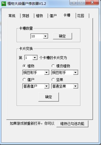植物大战僵尸修改器适用于植物大战僵尸无尽版游戏,只要切换选择下版本就行。植物大战僵尸修改器包含48项游戏属性的修改,分分钟各种狂野,并且能选择游戏挑战的难度,拥有它,僵尸神马的都是浮云。