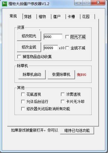 1、植物大战僵尸修改器基本功能修改阳光和金钱