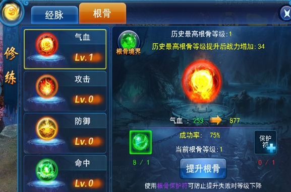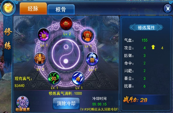 修炼系统:《御剑天下》中修炼系统分为经脉系统与根骨系统