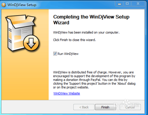 点击Finish完成安装。这时打开WinDjView程序,它的界面是英文的,这时就需要WinDjViewZH.dll和WinDjViewRU.dll这两个文件了。