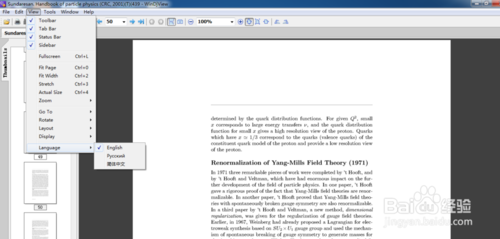 将下载好的WinDjViewZH.dll和WinDjViewRU.dll文件复制到WinDjView的安装目录下面。这时从打开后的界面仍然是英文的,这时选择View中Language的简体中文选项就可以了。