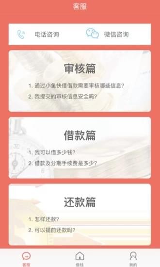 审核快:全程在线审核,小鱼快借app只需提交基本的身份信息,3分钟审核无需面签;