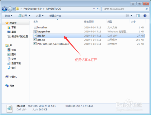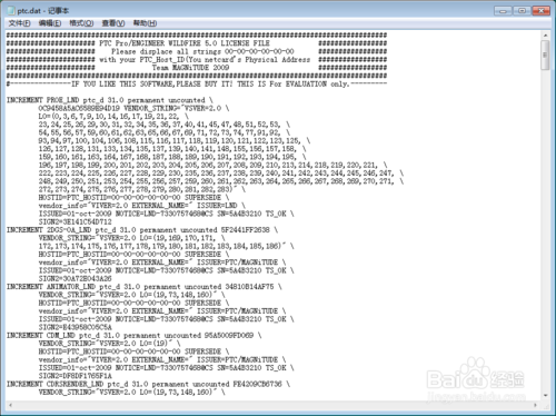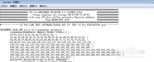 然后双击 ptc.dat 使用记事本打开,如下图:
