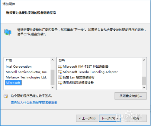 左侧选择“Microsoft”,右侧选择“Microsoft Loopback Adapter”,下一步直至安装完成