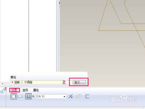 左下角点击放置,就是拉伸截面所在的面,然后再点击定义。