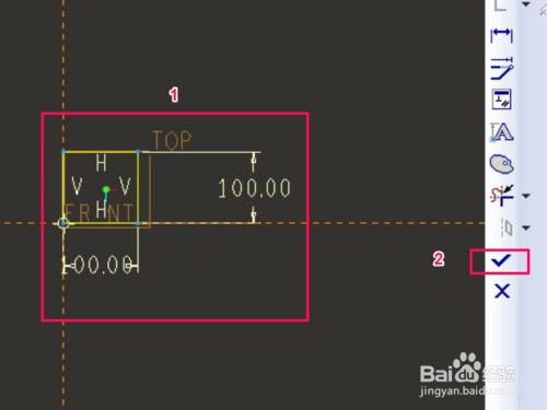 在草绘界面绘制需要拉伸的截面,并定义各尺寸,绘制完成后点击勾。
