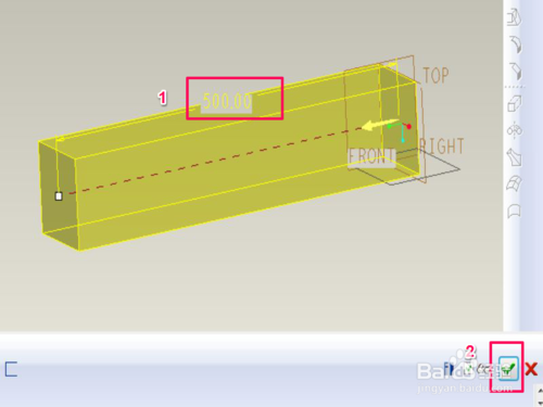 定义拉伸长度,确定之后点击打勾,此时拉伸建模完成。见图。