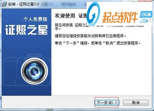 1、首先,点击已提取到桌面上的证照之星,然后在安装界面轻击下一步。