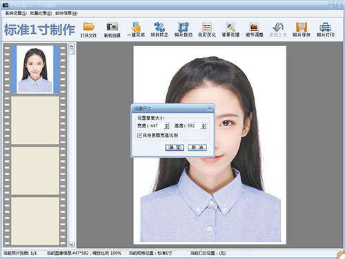 打开证照之星这款软件,然后再打开我们需要设置的证件照,点击“照片裁剪”中的“自定义尺寸裁剪”,会出现一个“设置尺寸”的对话框,在这上面我们就可以设置需要的像素大小,设置完成之后点击确定就可以进行裁剪了。
