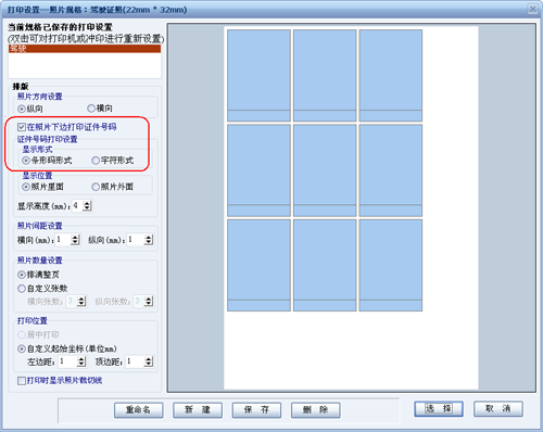 这是因为在打印之前的输出设置,没有取消选择“在照片下边打印证件号码”,我们只需点击菜单栏内“系统设置-打印排版设置”的工具按钮,在弹出的新窗口下就可看见。