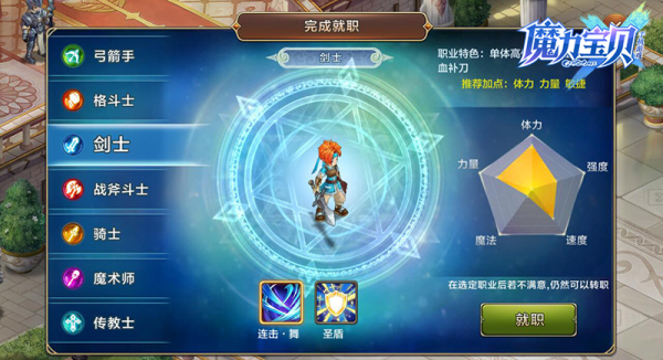 剑士是目前《魔力宝贝手机版》官方手游中所有职业里灵活性最强的一个,剑士的专精武器为“剑”,能够装备最高级别的剑和重型防具,可根据玩家的角色定位来进行量身打造:剑走偏锋输出型、攻防兼备均衡型、肉盾挡道防御型通通都由玩家说了算。在常规的PVP玩法或是PVE组队中,剑士都是可供队伍选择的协调型职业。