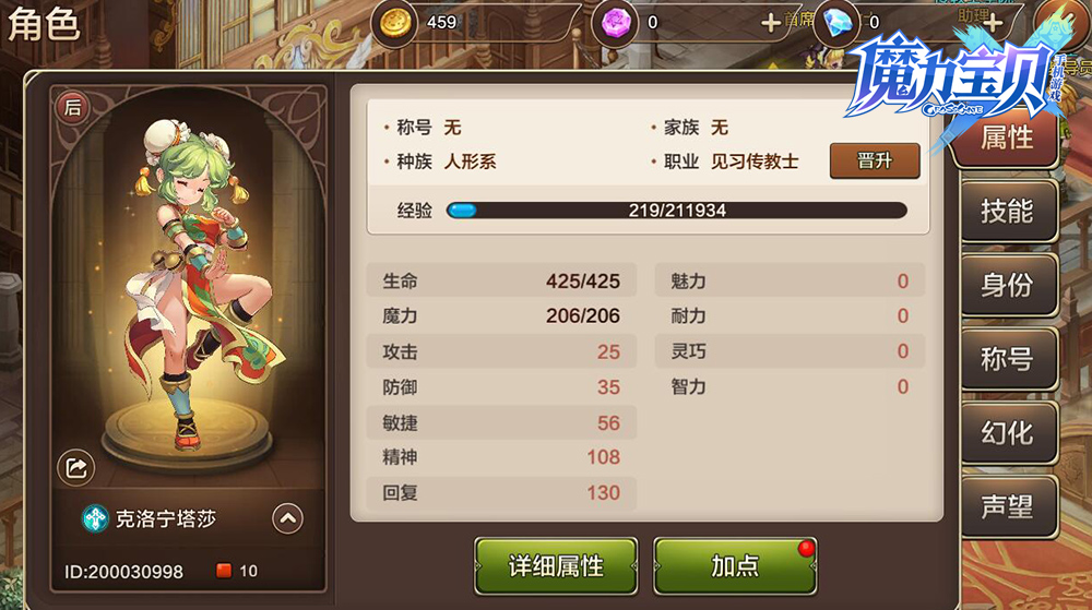 如若玩家要对人物属性中某一特定属性进行加点,则直接点击“加点”即可进入“加点”页面。