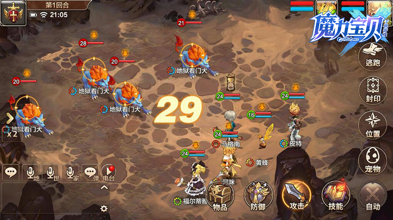 随着主线任务进行,勇士们将迎来《魔力宝贝手机版》第一次实战!进入战斗后界面右下角会出现可操作的指令,点击攻击按钮,再选择怪物,即可对怪物发起普通攻击,而点击技能按钮,再选择相应的技能,则可以使用强大的法术消灭敌人。此外,使用逃跑按钮可以脱离战斗,使用封印按钮则可以有几率收复怪物作为宠物,使用位置按钮可以交换自己和宠物的前后排位置,使用防御按钮则可以降低敌人对己方的普通攻击伤害,使用物品按钮则可以使用包裹中的各种道具,是不是很方便呢?