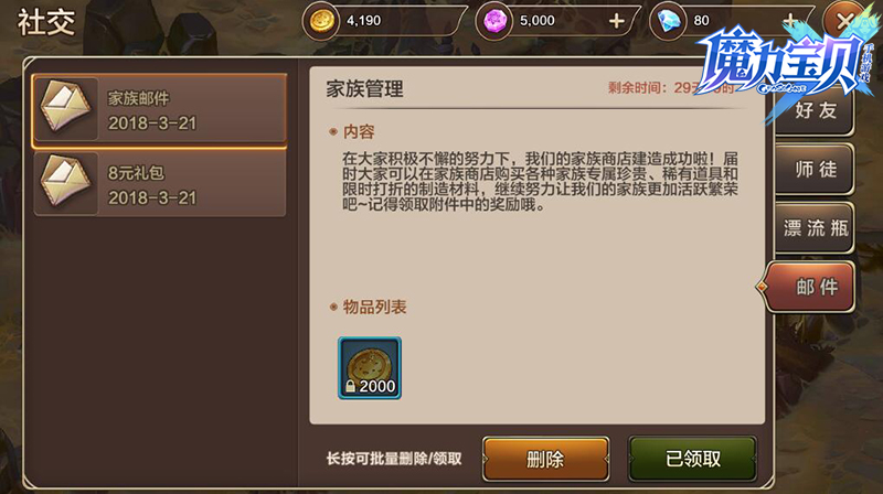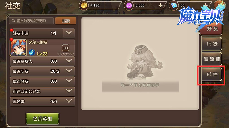 点击游戏主界面右下角“社交”按钮,找到邮件页签即可使用邮件功能。但凡系统公告,帮派公告,玩家赠送信息等,都会通过邮件来提示勇士们,有的邮件里还带有附件,可以提取附件到背包哦。