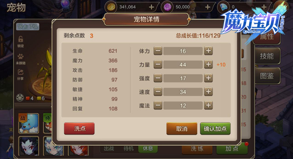 对于一些属性分布并不是非常极端的宠物来说,勇者们可以考虑均衡加点,例如加4点力量1点体的方法。这样的加点方式既能保证宠物的输出,也能尽可能多的提升宠物的血量。也有部分宠物在魔法、体力、力量上均没有特别突出,那么可以考虑查漏补缺的加点思路。