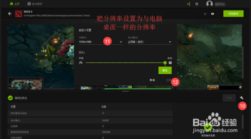 核对游戏优化后的分辨率是否与自己电脑桌面的分辨率一致,然后点【应用】。否则需要设置成一致。不然会导致启动游戏时,显示器超出范围