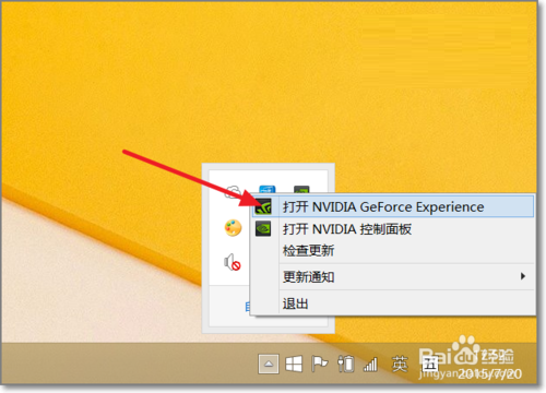 双击桌面的GeForce Experience快捷图标,如删除了,也可以如图点击打开GeForce Experience软件。