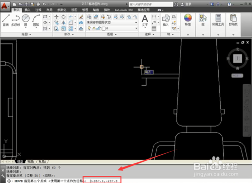 6、输入第二点参数“@-957.4,-237.8”。按回车键结束。