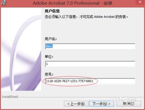 第六步:填写【用户信息】,用户名和单位可以随意填写,序号可以百度搜索即可,如下图