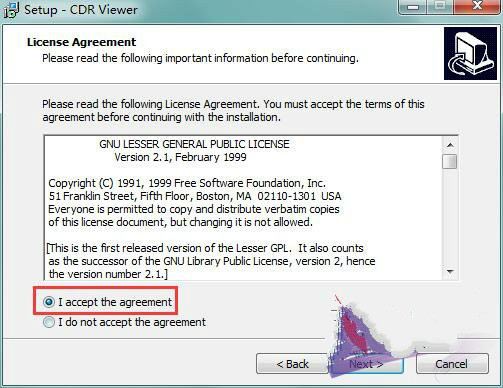 2、阅读许可协议,勾选“I accept the agreement”