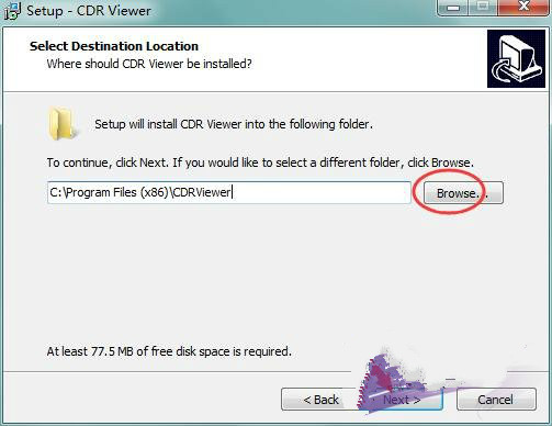 3、设置CDR Viewer的安装位置,默认的是“C:\Program Files (x86)\CDRViewer”,可以点browse修改