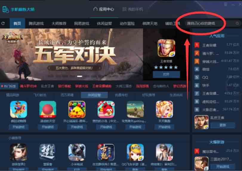 4.在分类推荐里面如果没有要寻找的游戏应用,也可以在应用中心右上角输入想要安装的游戏或者APP名称,搜索安装。