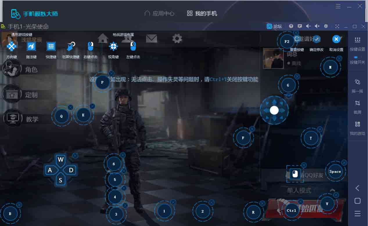 启动游戏后,点击手机1右侧的“按键”设置,即可设置游戏快捷键。