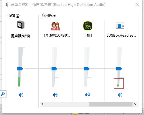 (1)需要电脑上的音量合成面板,在音量合成面板中看下是否有:手机和LDSBoxHeadless(如下图所示)