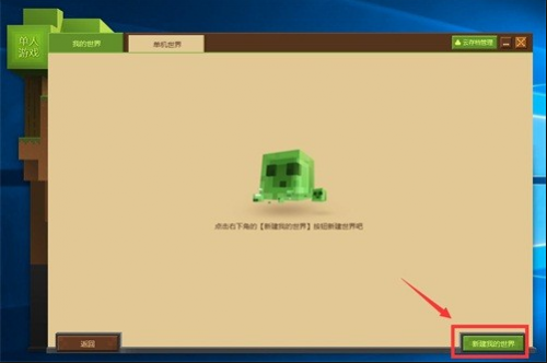 2、进入之后,我们直接根据提示点击选择“新建我的世界”。