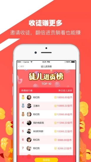 5、收徒赚更多,翻倍进贡躺着赚