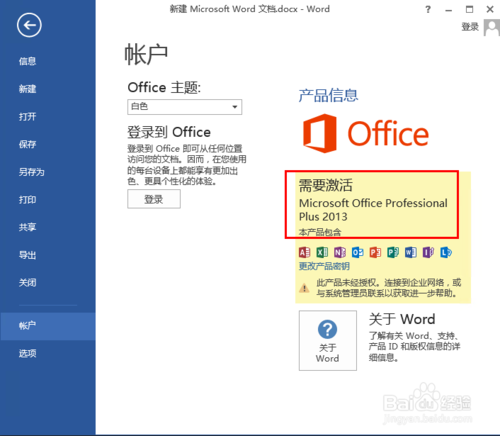 新建一个word文件、然后打开查看激活状态