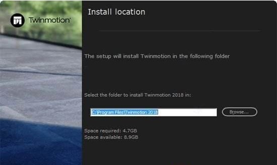 3、选择安装文件夹(默认是C:\Program Files\Twinmotion 2018 Edition)然后点击“Install”进入安装