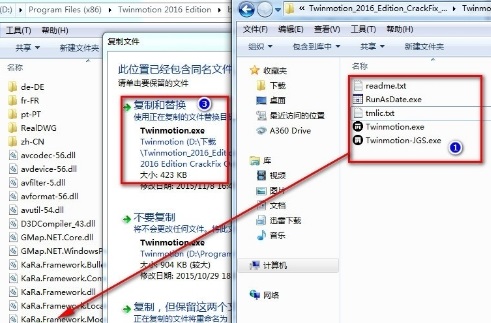 6、解压打开“Twinmotion_2018_Edition_Crack”破解文件,复制里面的全部文件到安装目录 /bin文件夹内,覆盖