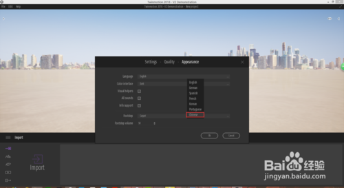 找到“Appearance”菜单并选择进入,可以看到下面有一项“language”