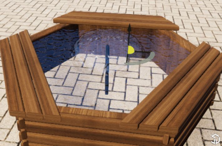 Twinmotion水材质制作教程首先,找到一个喷泉的3dmax模型,转为FBX文件。下图为导入模型后的状况,如果导入时模型太小或者找不到模型,打开右上角的模型大纲,找到导入的模型1.fbx,按“F”最大化。