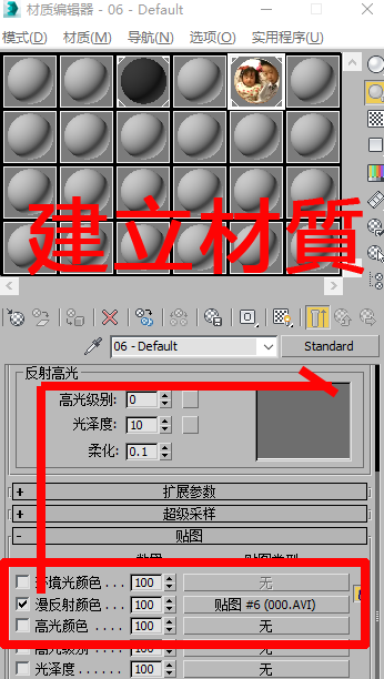 将材质的纹理放大,将凹凸降低到较低的数值,如图所示。最重要的一步!点击纹理“尺寸”的“更多”按钮,进入纹理动画选项。