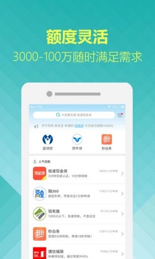 1、极速放款:极速小额贷款,线上全自动化信审,快至1分钟内到账;2、额度灵活:小额轻松借,大额高至5万;